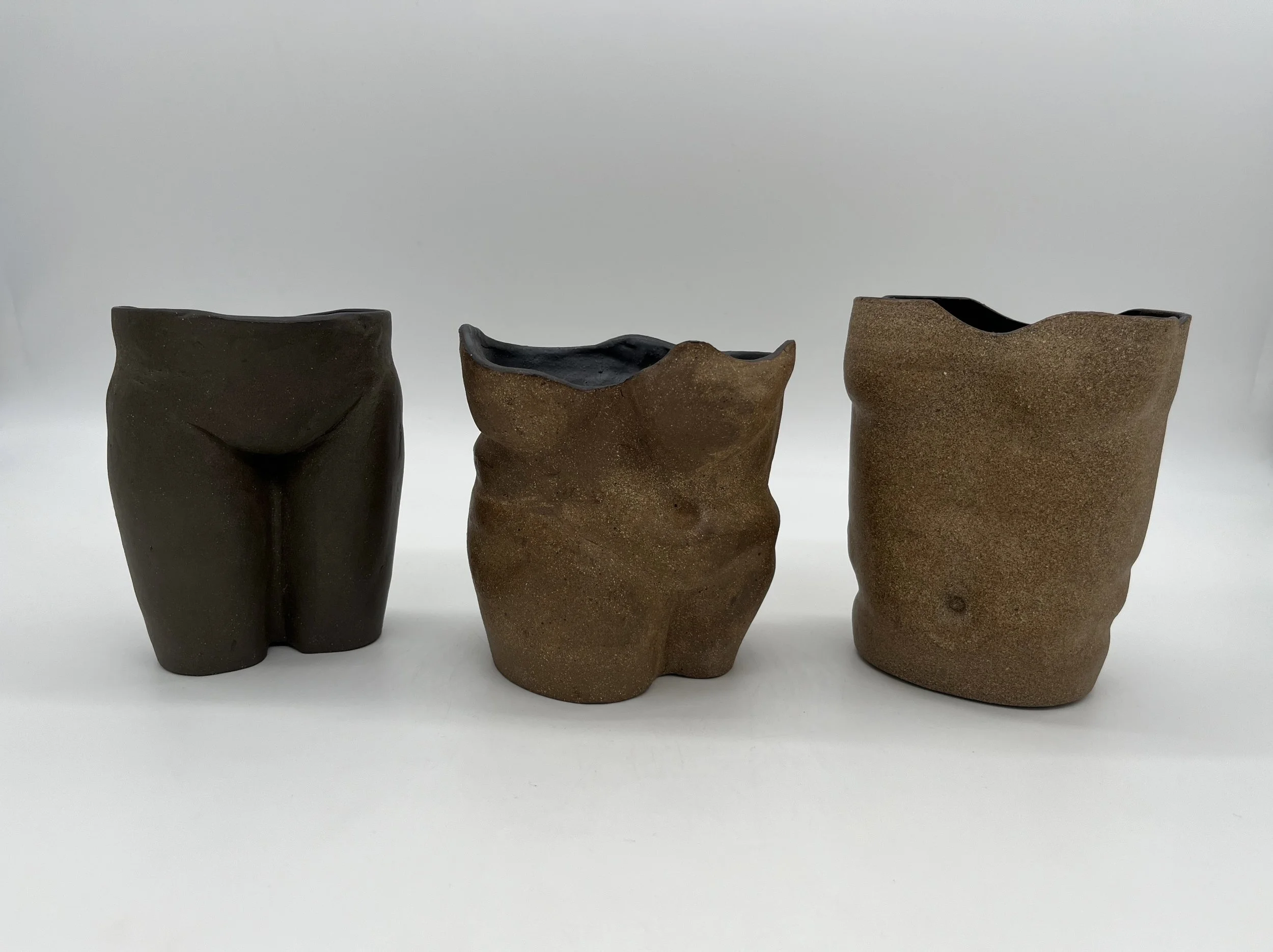 Set of three stoneware altered thrown forms